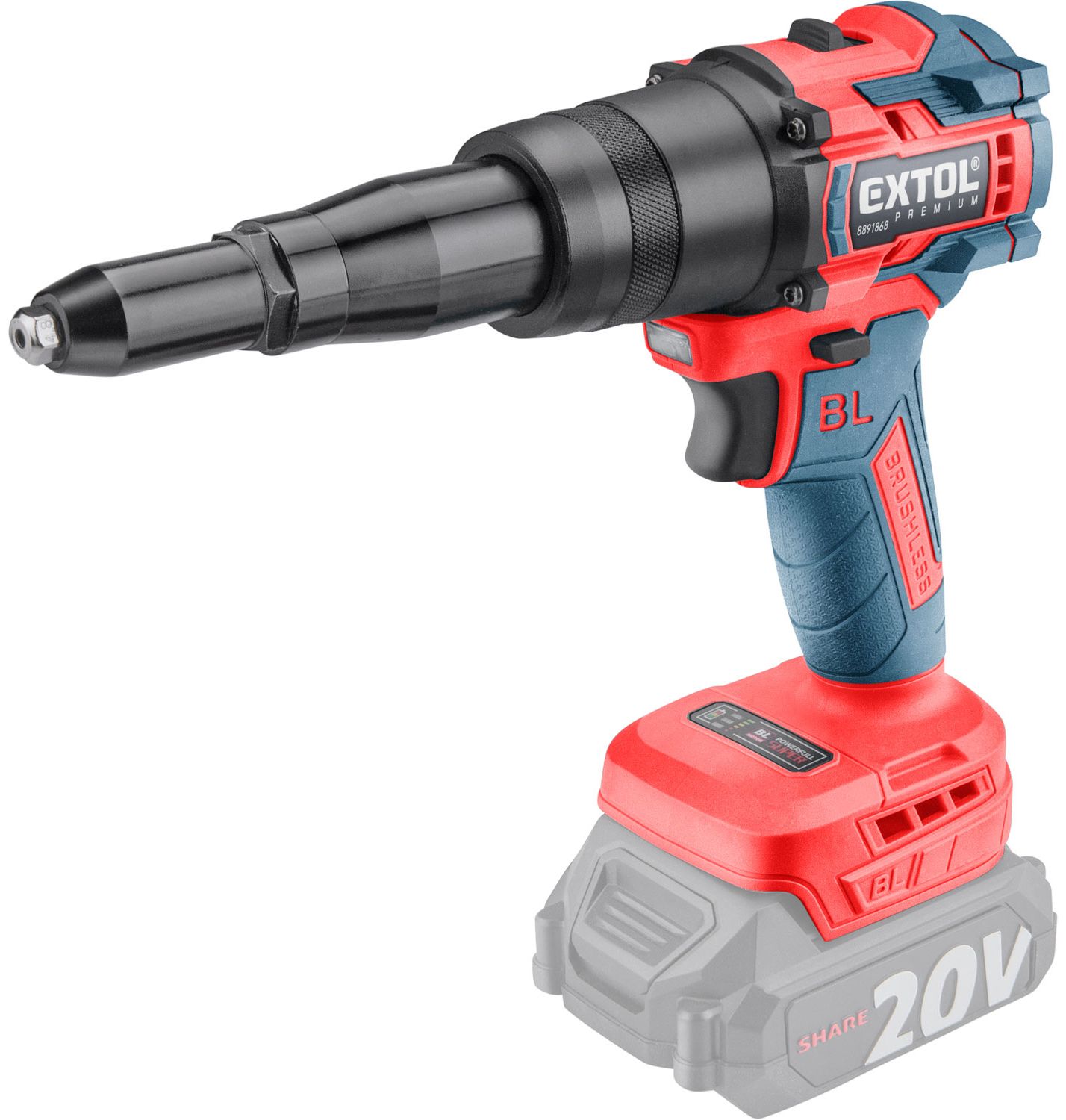 Extol 8891869 Share20V akkumulátoros popszegecshúzó (akku és töltő nélkül)